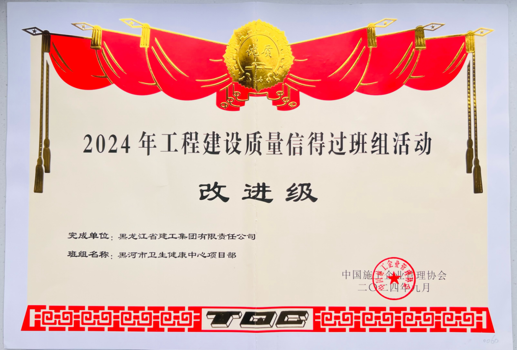 • 黑河市衛(wèi)生健康中心項目部2024年工程建設質量信得過班組活動改進級